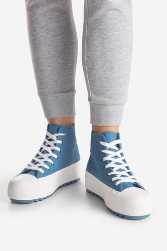 Modré tenisky se dobře hodí k obyčejným džínům a plátěným kalhotám. Kombinujte je se sukněmi i s poněkud elegantnějšími outfity. Obzvlášť skvěle vypadají s džínovými minisukněmi, sukněmi áčkového střihu v délce ke kolenům, ale také s dlouhými sukněmi až k lýtkům s rozparkem. Nadčasová kombinace je určitě: džíny, klasické tričko a tenisky. Chybu však neuděláte, pokud je zkombinujete s jednoduchými bavlněnými šaty.