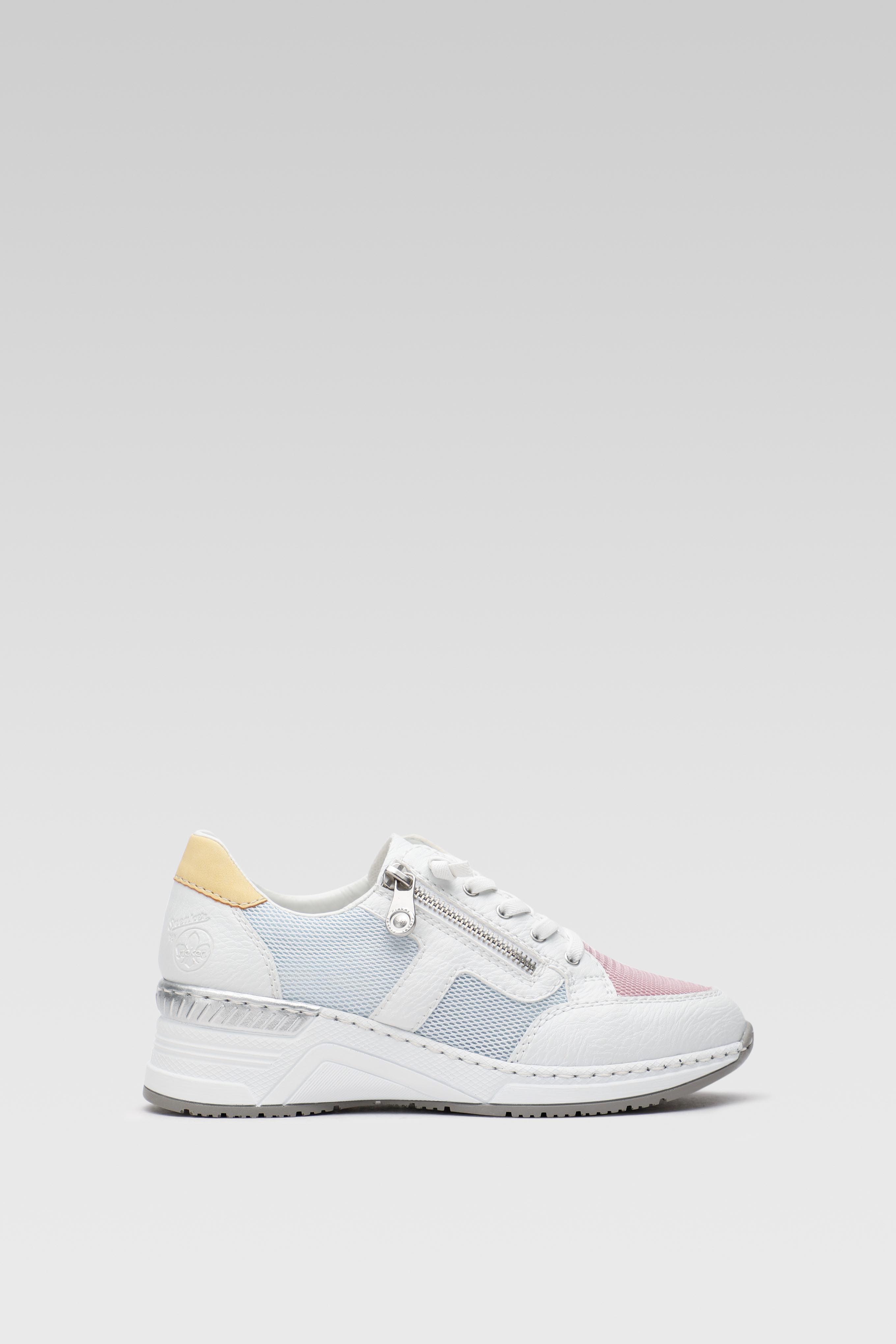 Vyberte si tenisky Rieker, které se dokonale hodí k vašemu životnímu stylu! Bílé, nízké tenisky na klínku nejsou jen elegantní obuv, ale také záruka pohodlí na každý den. Syntetické tenisky se osvědčí v různých podmínkách. Praktické zapínání na zip a tkaničky zaručují snadné obouvání a dokonalé přizpůsobení chodidlu. Lehkost, pohodlí a univerzální bílá barva – Rieker zná potřeby žen a odpovídá na ně těmito krásnými botami. Spojte je s oblíbenými džínami nebo lehkými šaty a užívejte si dobrý vzhled každý den!