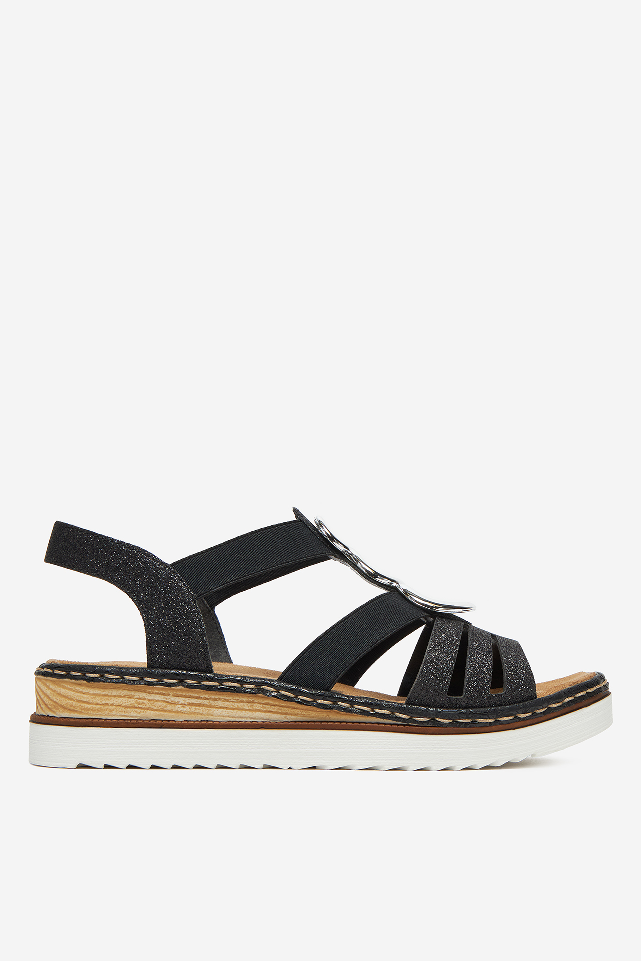Sandály Rieker jsou ideální kombinací pohodlí a módního designu. Vyrobené z vysoce kvalitního syntetického materiálu, zajišťují trvanlivost a komfort na každý den. Klín jemně zdůrazňuje siluetu, přidává eleganci bez ztráty pohodlí. Technologie Rieker Antistress zaručuje výjimečnou lehkost a odpružení, díky čemuž je každý krok skutečným potěšením. Jemný třpytivý akcent dodává obuvi šmrnc, díky čemuž se skvěle hodí jak pro každodenní, tak i pro více formální stylizace.