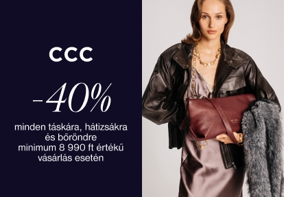 -10% kedvezmény a nem kedvezményes kézitáskákra, táskákra, hátizsákokra és bőröndökre a ccc.eu oldalon, az alkalmazásban és az üzletekben. Állandó ajánlat, visszavonásig érvényes. A kedvezmény automatikusan kiszámításra kerül a kosárban. Az ajánlat nem kombinálható más akciókkal.