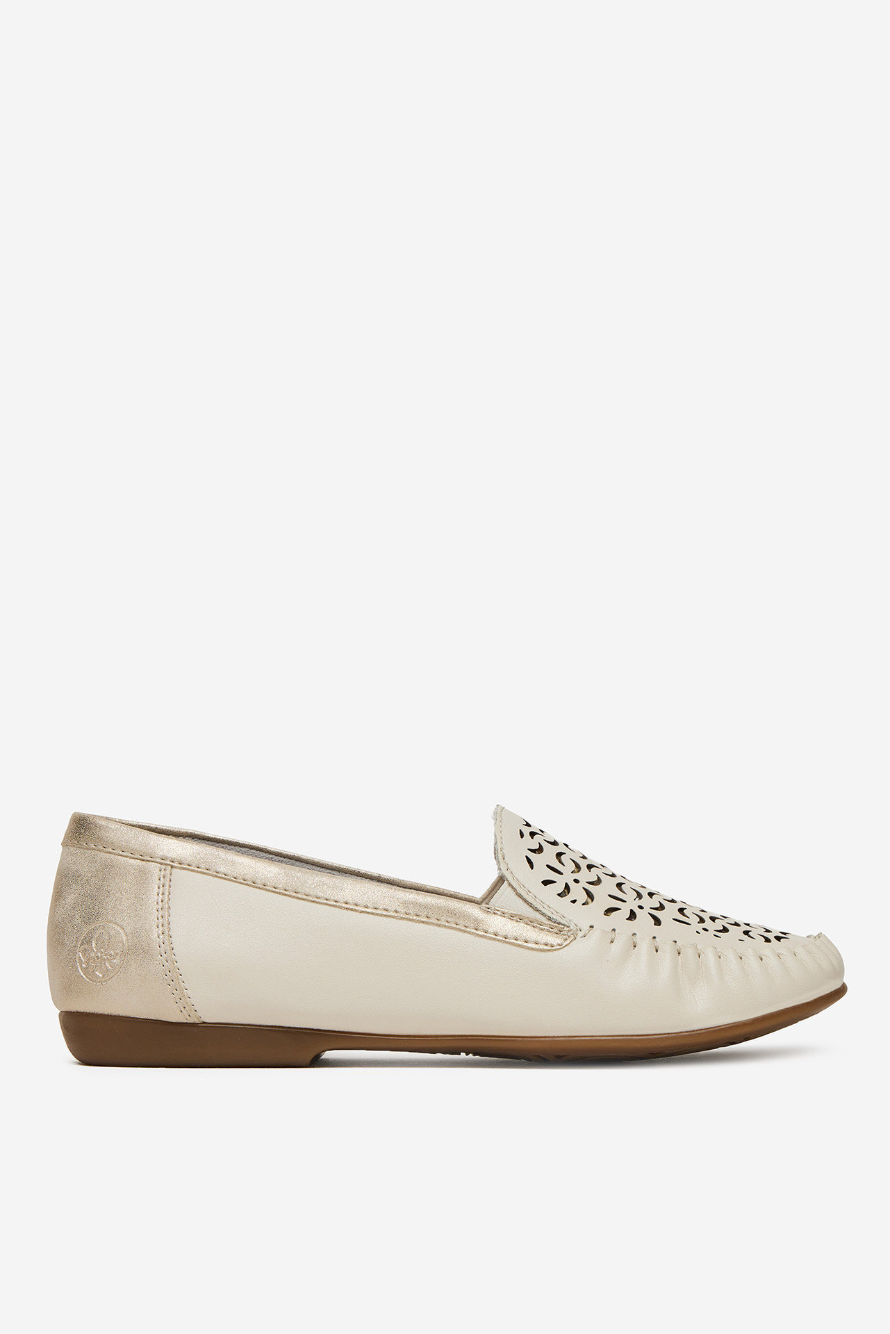 A világos bézs színű Rieker mokaszin tökéletes választás a kényelmet és eleganciát értékelő nők számára. Kiváló minőségű bőrből készült, egész napos tartósságot és kényelmet biztosít. A Rieker Antistress technológiának köszönhetően a cipő tökéletesen tompítja minden lépést, minimalizálva a láb fáradtságát és páratlan viselési kényelmet nyújtva. Ez a balerina cipő kiváló ajánlat minden alkalomra, ötvözi a klasszikus stílust a modern megoldásokkal. Tökéletes a mindennapi és alkalmi öltözékekhez, finom bájt kölcsönöz minden ruhadarabnak.