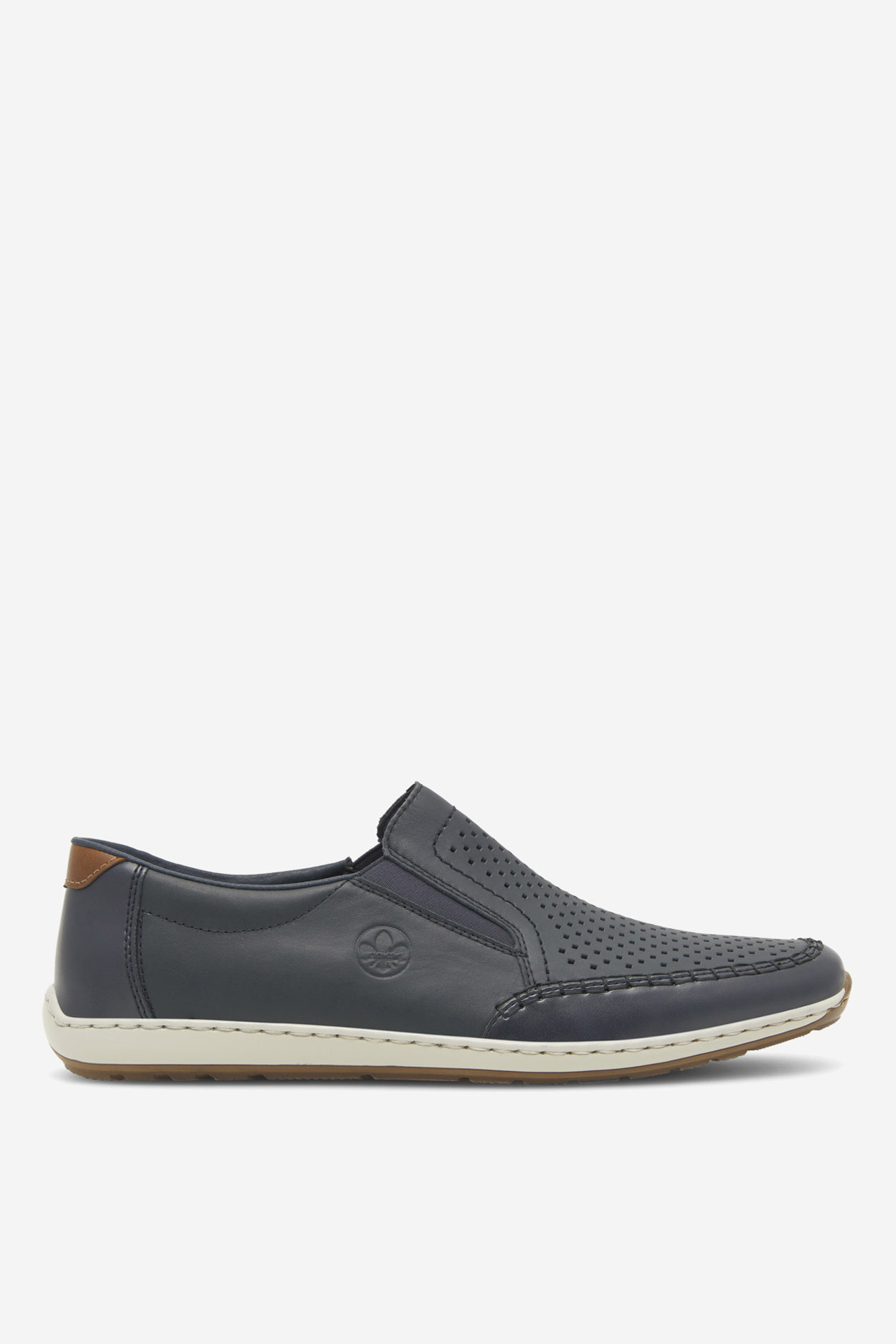 Odkrij vsakodnevno udobje z modrimi čevlji znamke Rieker! Idealni za moške, ki cenijo udobje v kombinaciji z neformalnim slogom. Ti čevlji brez vezalk, izdelani iz visokokakovostnega usnja, omogočajo enostavno obuvanje in sezuvanje, kar je neprecenljivo v vsakdanjem življenju. Zaobljena konica zagotavlja udobje za tvoje noge skozi ves dan. Ravna peta zagotavlja stabilnost in udobje, priložnostni slog pa jih naredi za idealno izbiro za številne vsakodnevne kombinacije. Modra barva v kombinaciji s klasično zasnovo je zagotovilo, da boš videti modno v vsaki situaciji. Izberi čevlje Rieker in uživaj v vsakem koraku!