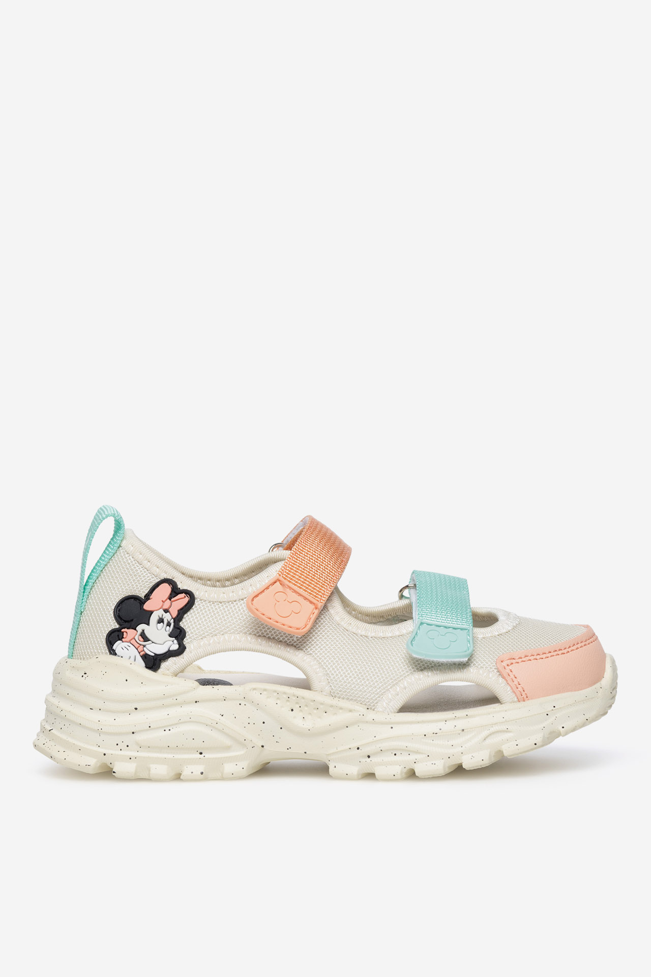 Otroški sandali Mickey&Friends so idealna izbira za vsako poletno pustolovščino tvojega malčka! Bež barva jim daje eleganco, priložnostni slog pa poskrbi, da se ujemajo s številnimi otroškimi oblačilnimi kombinacijami. Udobno zapiranje na ježka omogoča hitro in samostojno obuvanje. Poleg tega zaobljen, zaprt prstni del ščiti majhne prstke med igro. Sandali so izdelani iz tekstilnih materialov, kar zagotavlja zračnost in udobje tudi v najbolj vročih dneh. Raven podplat je zagotovilo stabilnosti in varnosti med hojo, tekom in vsemi aktivnostmi na prostem. Obutev Mickey&Friends je odlična izbira za starše, ki iščejo kombinacijo mode in funkcionalnosti za svoje otroke.