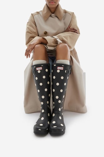 Obuv ako gumáky síce na prvý pohľad môže pôsobiť ako nudný a čisto úžitkový kúsok, nemusí to však byť vždy pravda. Ak si zaobstaráte jednofarebné čierne alebo béžové gumáky na štýlovej platforme, z gumákov sa ľahko môže stať obuv, ktorú vynosíte aj mimo upršanej sezóny. Takéto trendy gumáky jednoducho zladíte k vašim obľúbeným rifliam alebo iným nohaviciam a bunde. Ak máte chuť na nápaditejší outfit a počasie to dovoľuje, tak aj k pančuchám a ležérnym šatám.